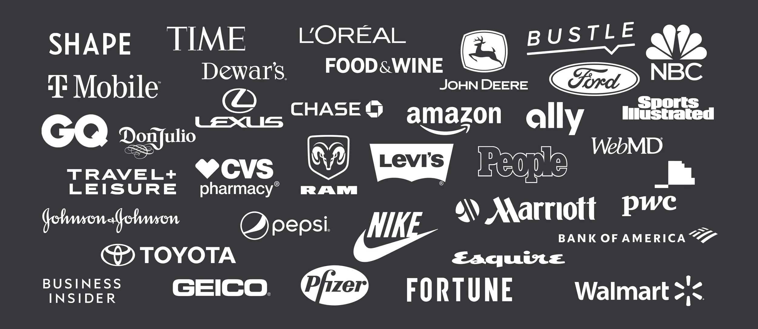 Over the years, our award winning team has created branded content for such clients as Amazon, Hilton, Lexus, Levi's, Pepsi, Dewars, Ram, Chevy, Ford, Toyota, Walmart, L’Oreal, TMobile, CitiBank, Chase, PWC, and Grayscale to name a few. We look forward to bringing your wildest concepts to life.